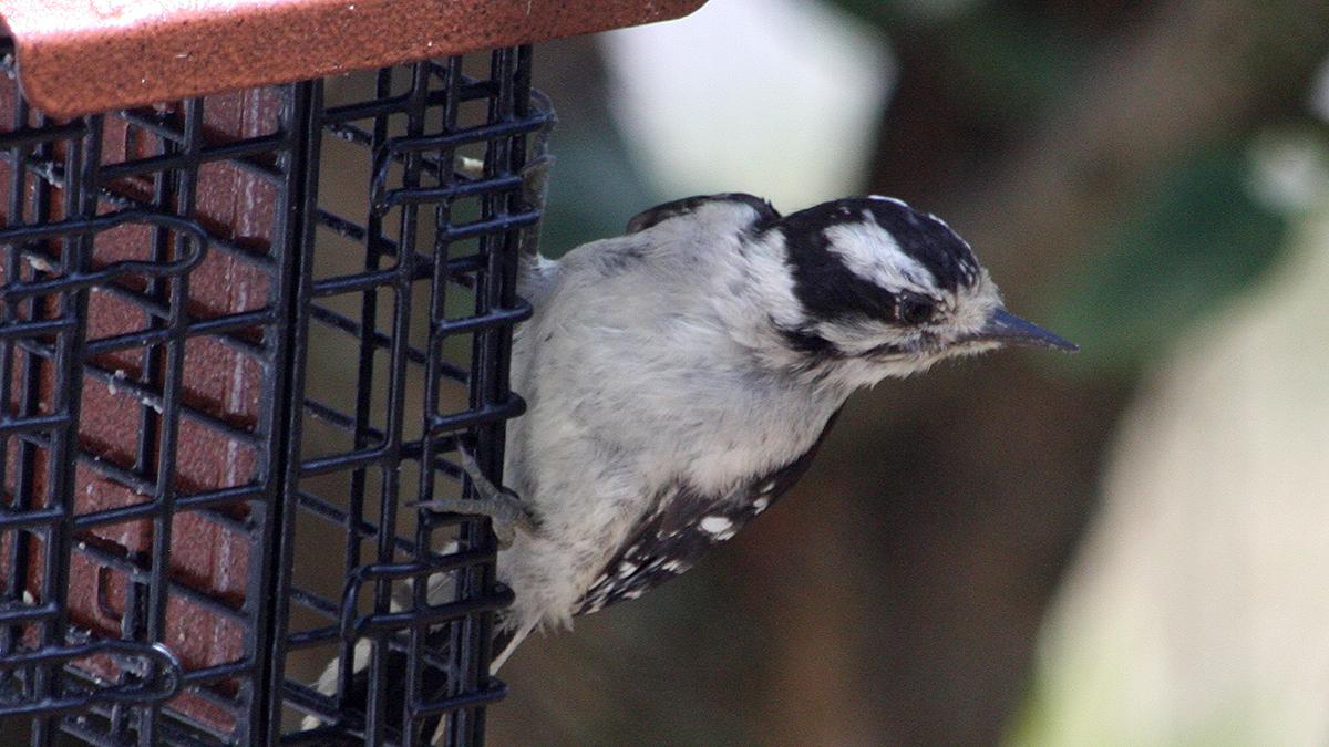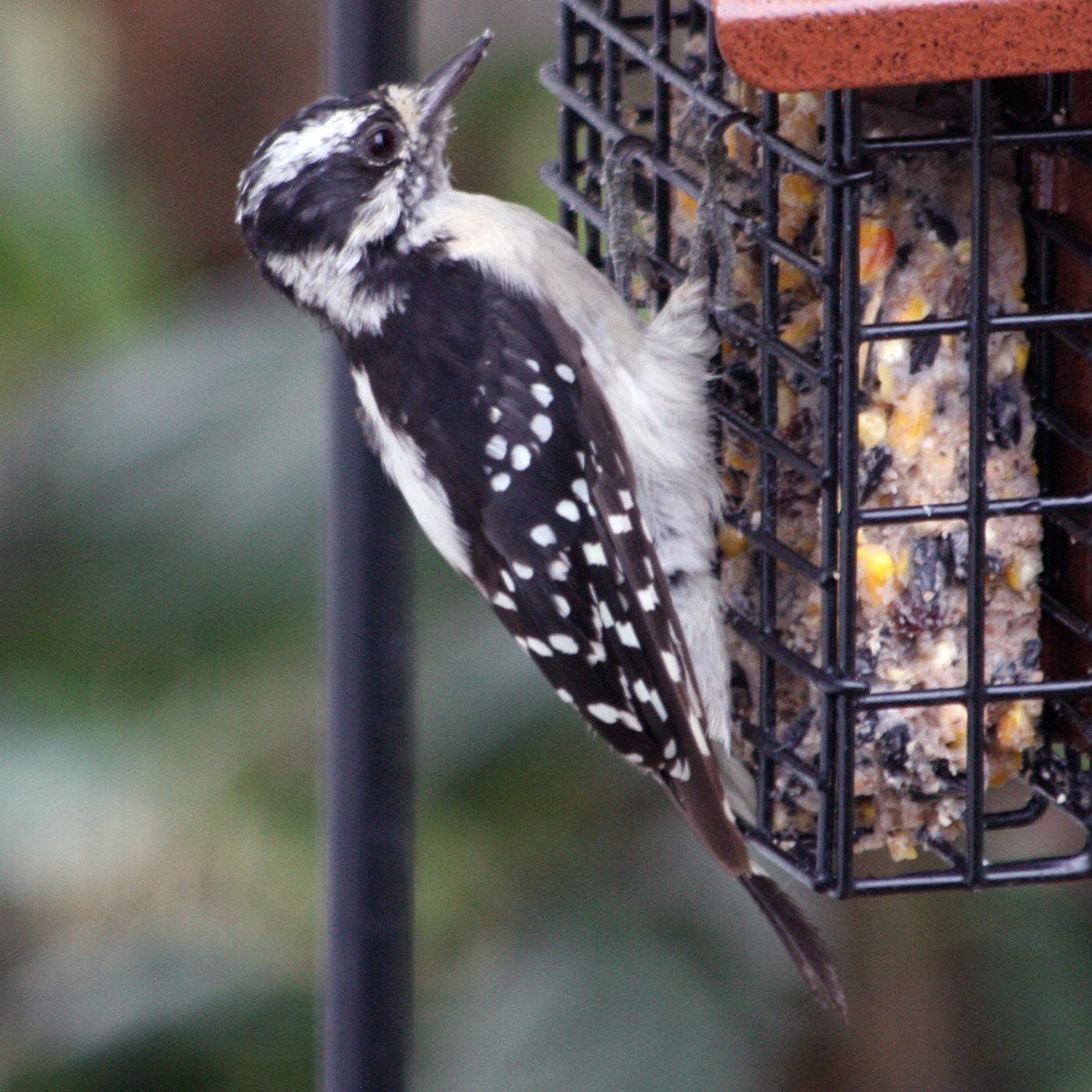 Downy Woodpecker (immature) at the Suet Cage